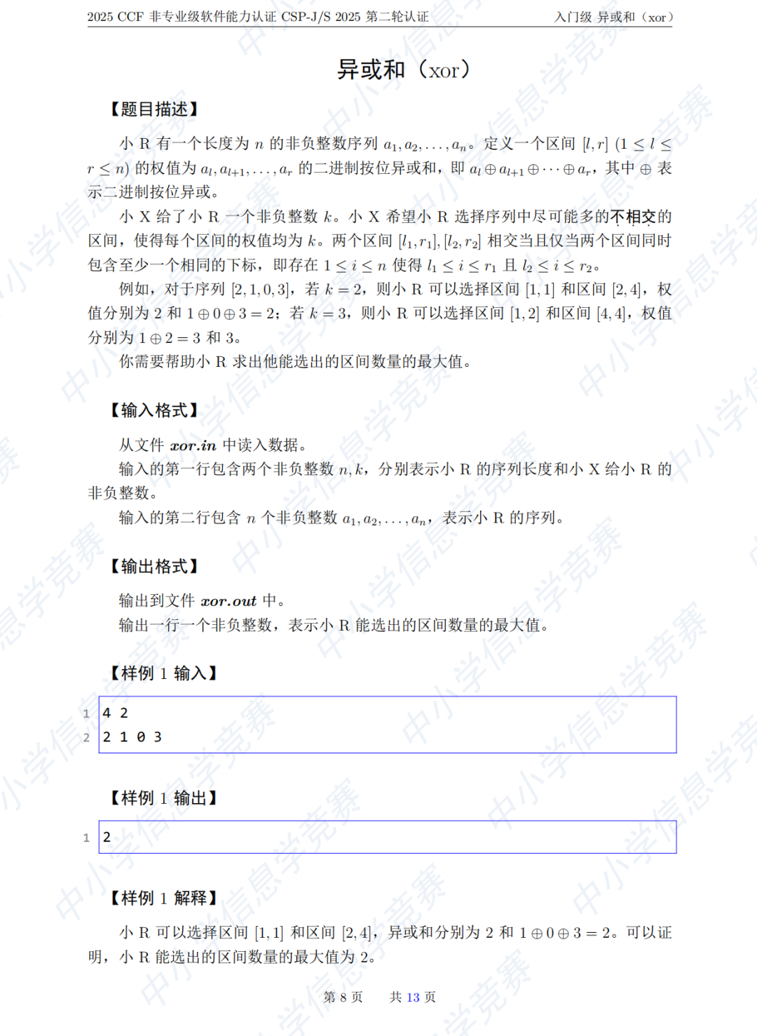 Problem3506--【Div2】2025CSP-J-P3 - 异或和Xor