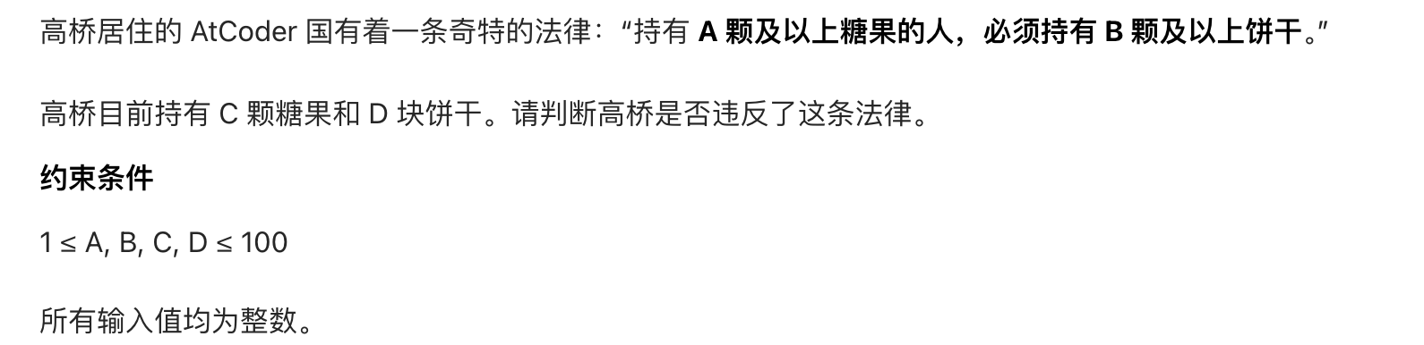 3508: 【语言基础】abc430a - Candy Cookie Law