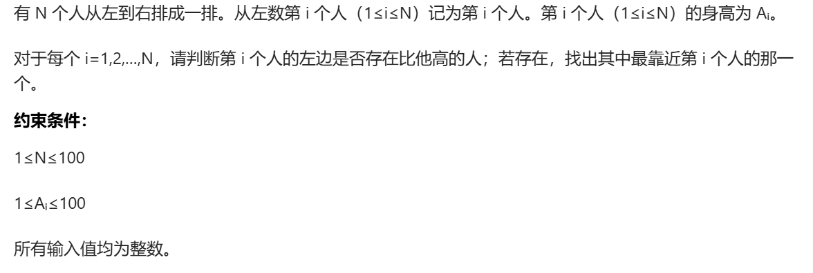 若第i个人的左边有比他高的人的条件为假,则输出-1