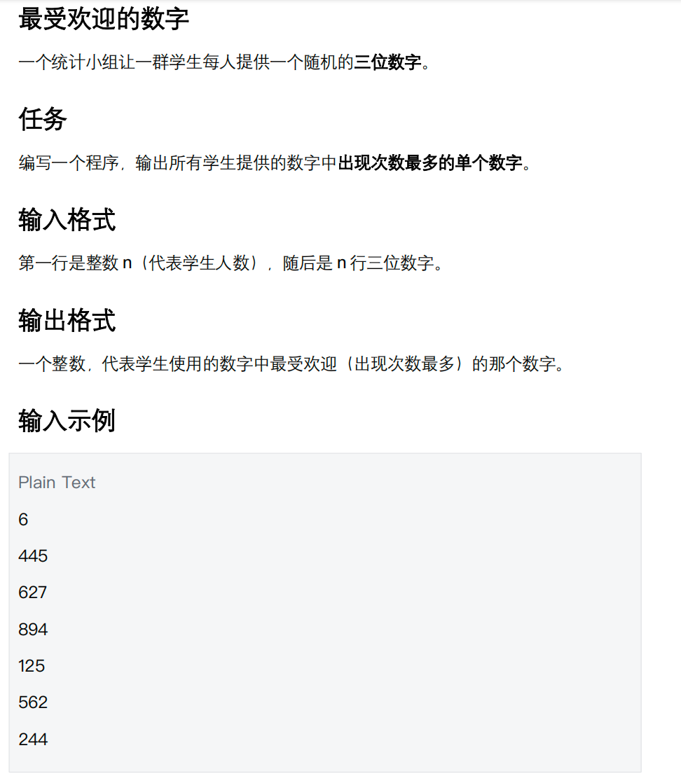 3595: 【Div4】数位练习 - 最受欢迎的数字