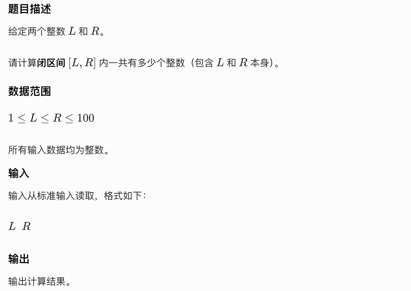 Problem3604--【语言基础】abc454a - 闭区间